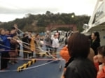 最後は紙テープでお別れ!なんか切ないですね…でもまた来る事を約束して島を後にしました。