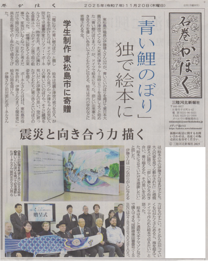 そして、新たに「青い鯉のぼり紙芝居プロジェクト構想」についても発表されました。これに関しましては後日HPでも発表させていただきます。