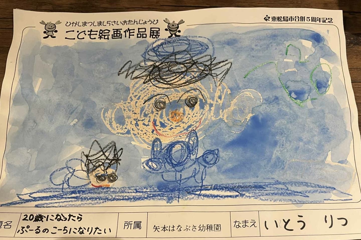 青い鯉のぼりを弟の律や同じ東日本大震災で亡くなったこども達の為に、地震や津波の心配の無い大空高くに揚げてください。