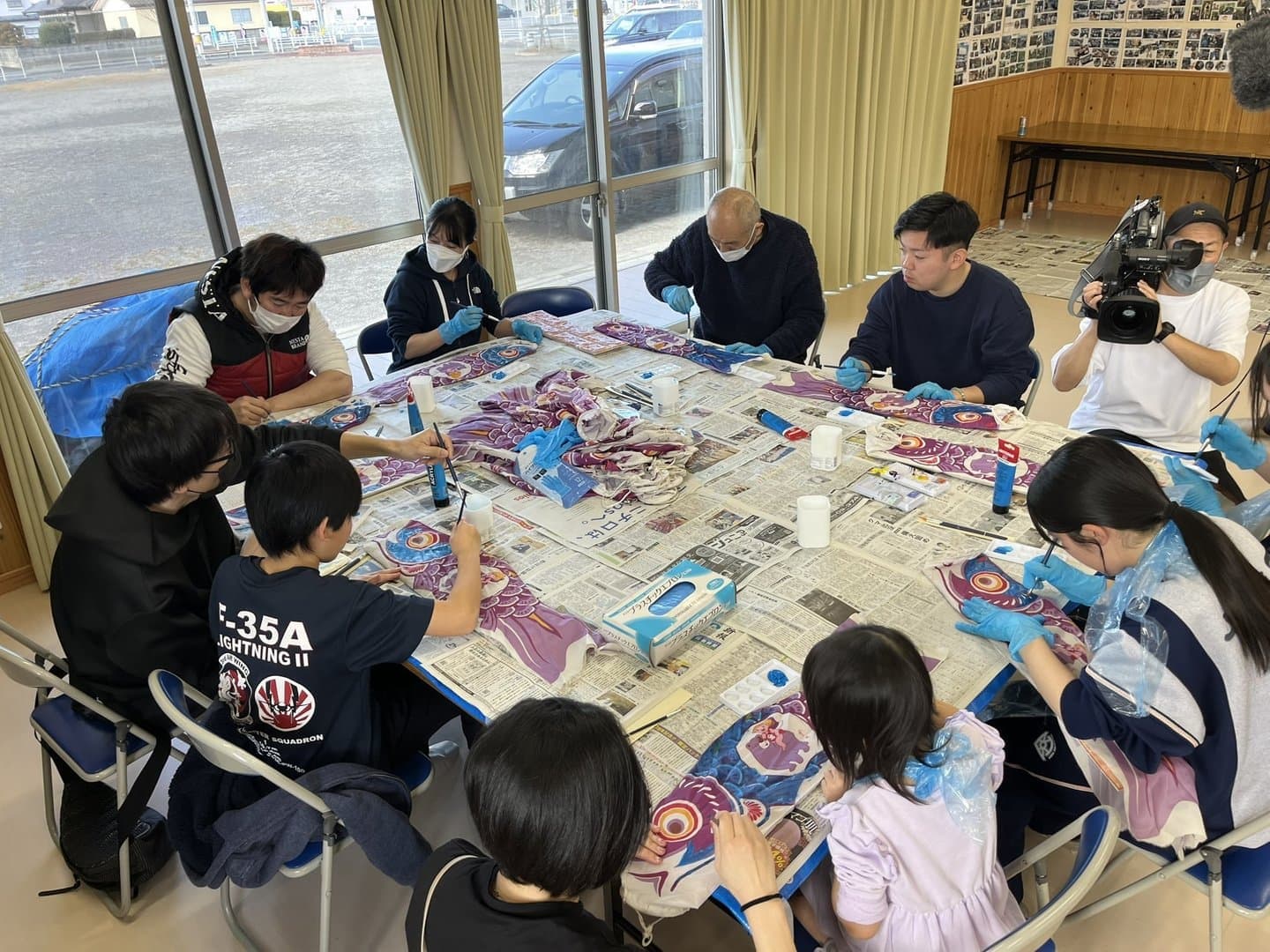山口県のケーブルテレビ局「Kビジョン」の皆さんが、青い鯉のぼりプロジェクトの取材に来ました。