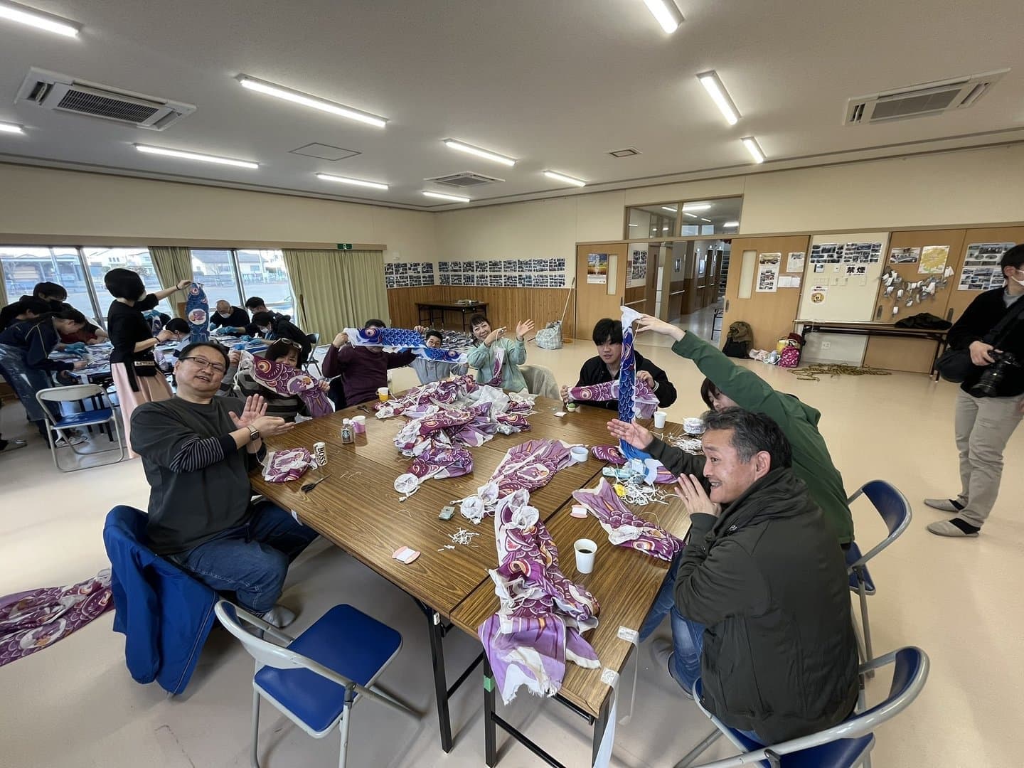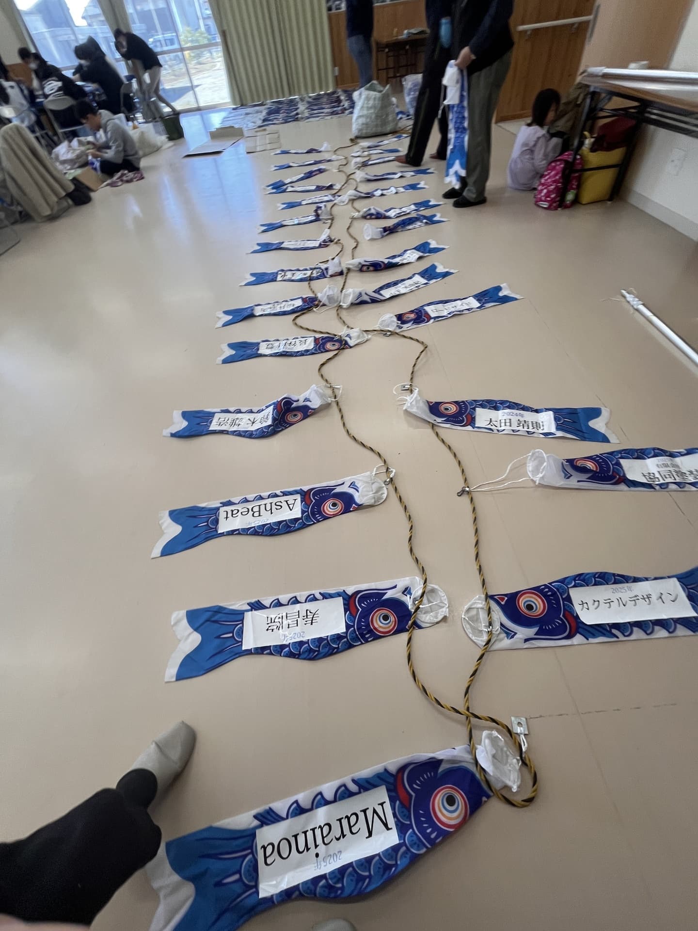 The blue koinobori were sent in from all around Japan, from Hokkaido to Okinawa. On the May 5th, Boy's Day, volunteers gathered from local cities and from Southern Japan to his hometown.