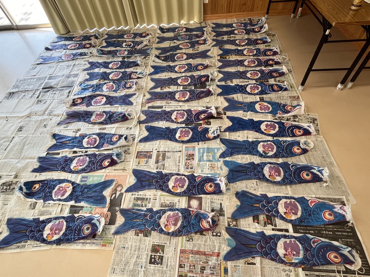 今年からは大曲市民センターのご理解と協力のもとセンターのホールでの作業となりました。ありがとうございます。そして、総数は626尾となりました。