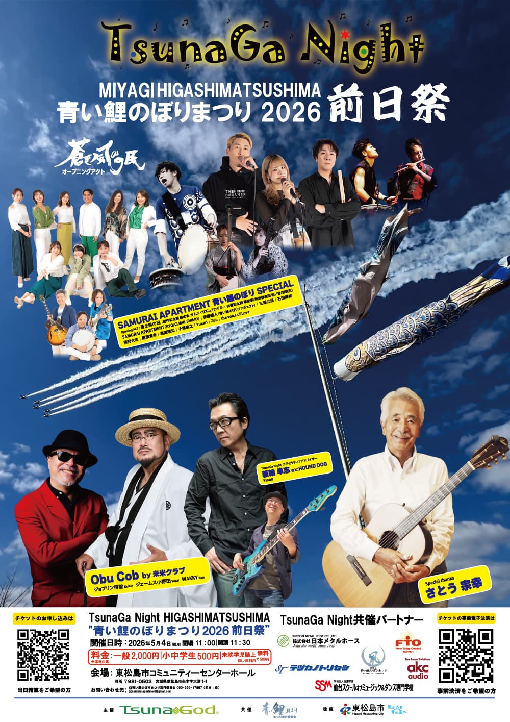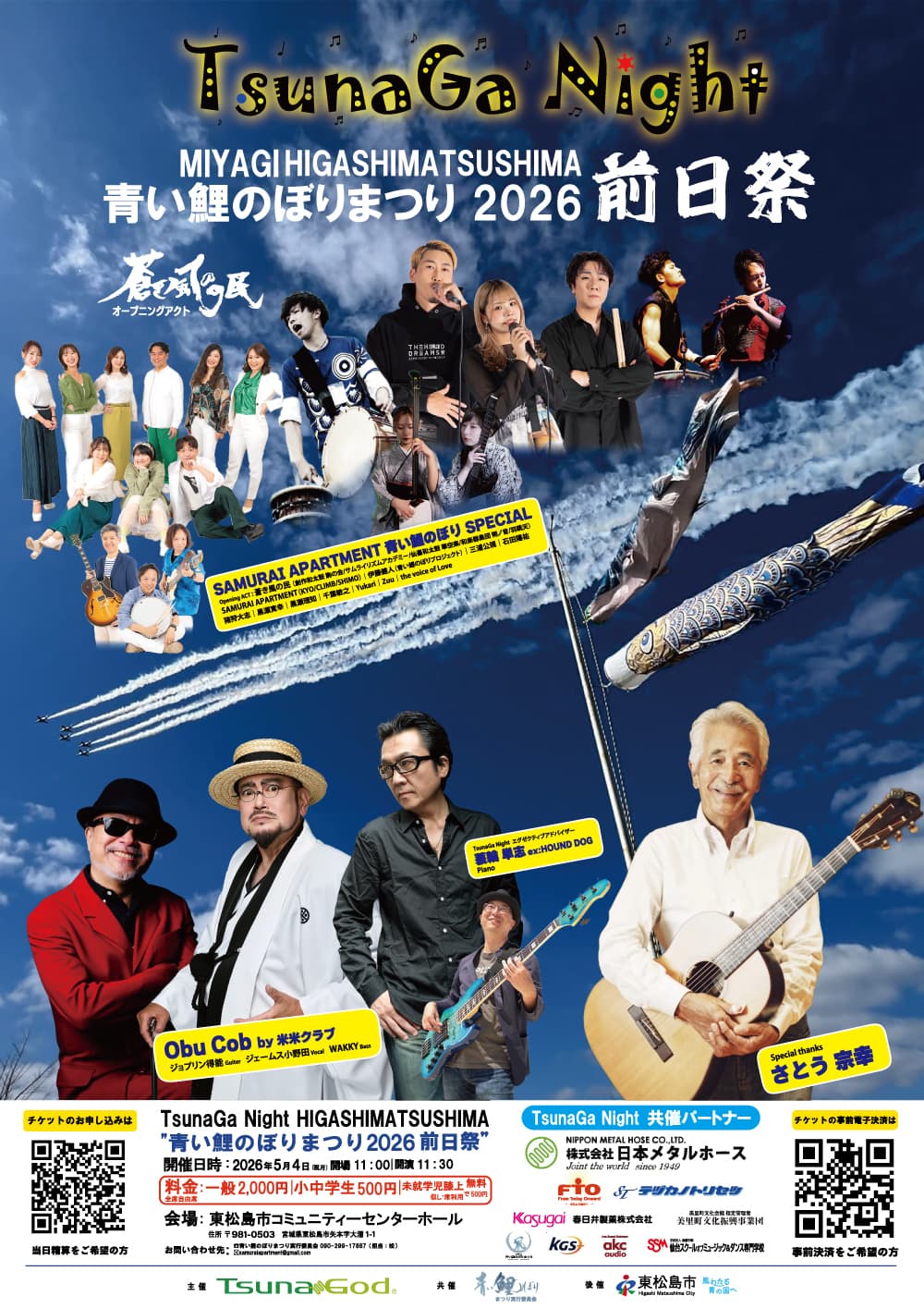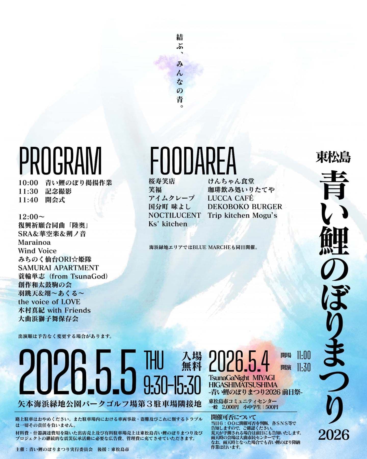 また、その年の9月に行われた青い鯉のぼりプロジェクト復興と追悼のコンサートにもゲストで参加していただきました。